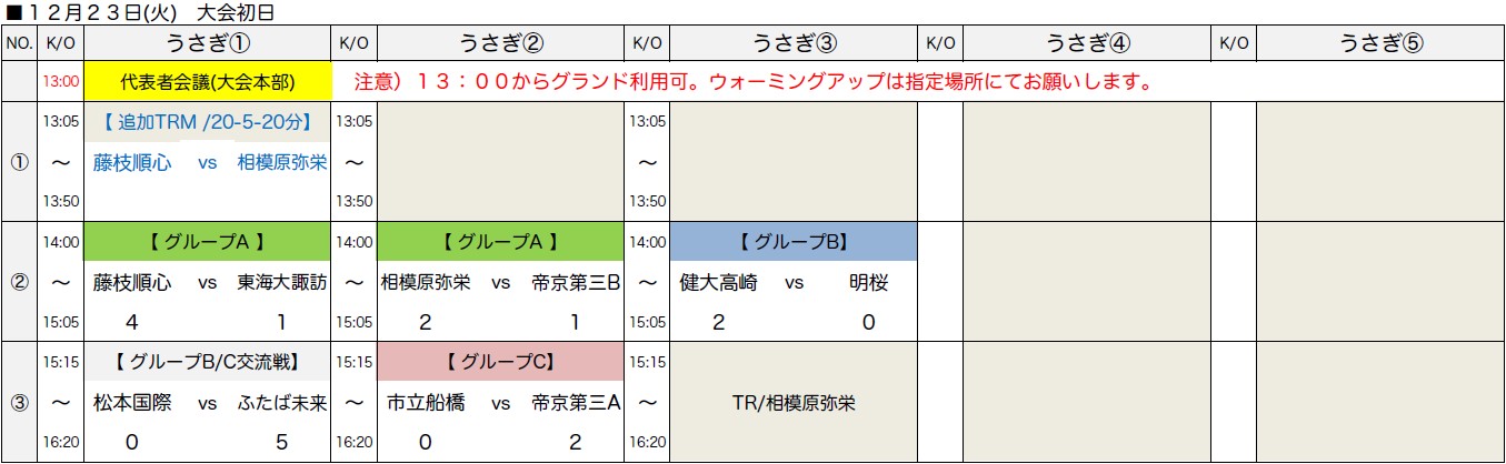3) 試合時間は、全試合60分(30-5-30)を予定。