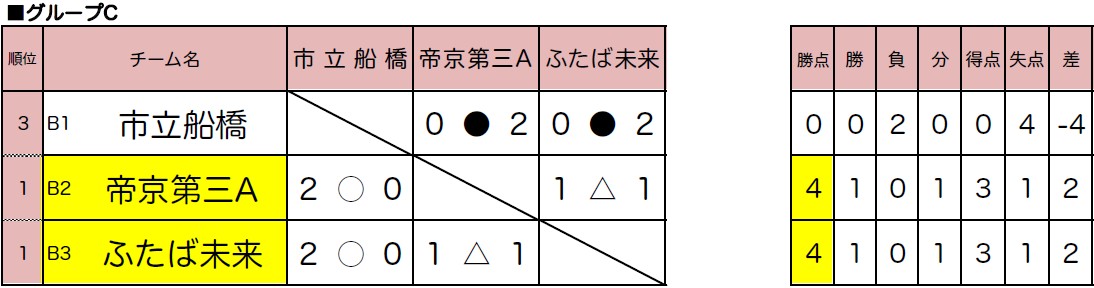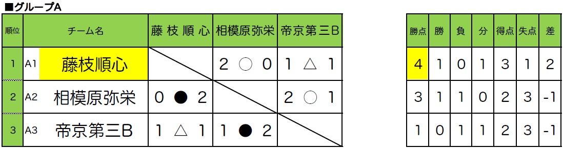 カップ戦(規定試合:初日1試合・2日目/2試合・最終日/2試合)
