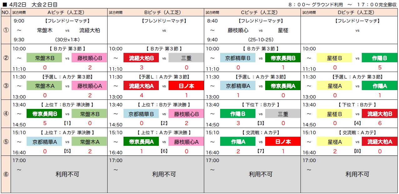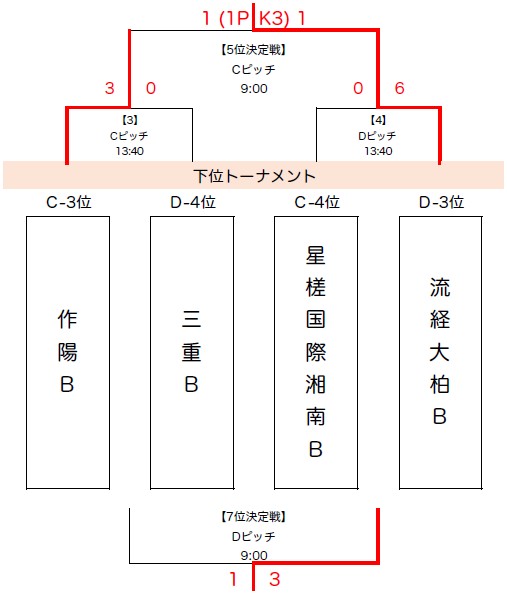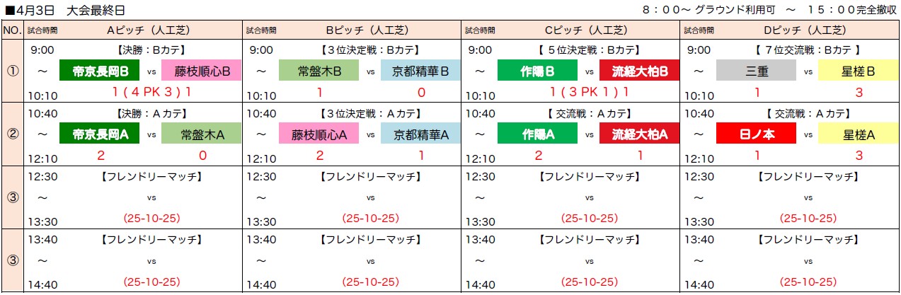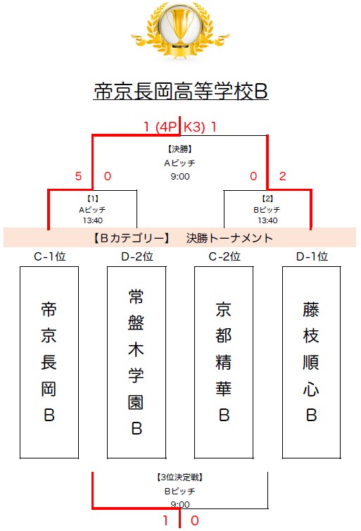 2)トーナメント戦において同点の場合はPK方式により勝者を決定する。