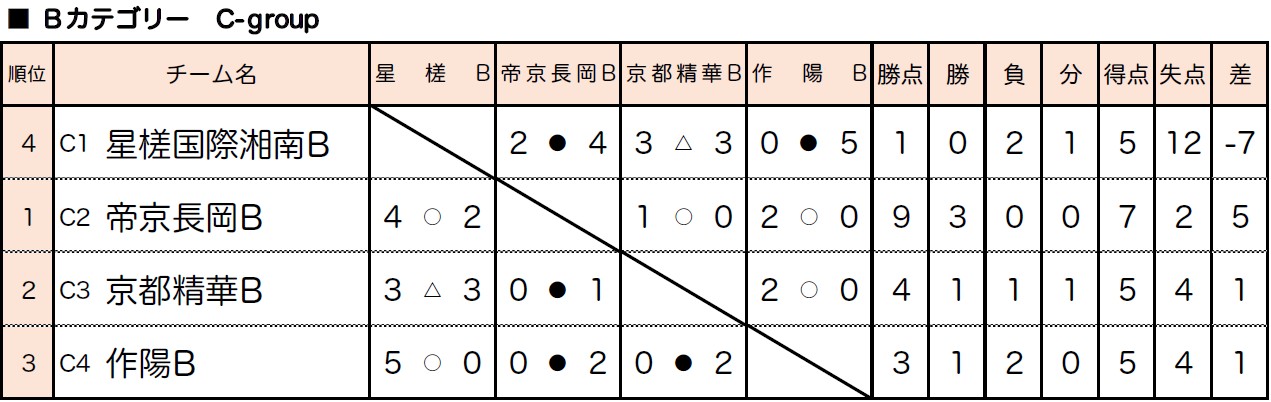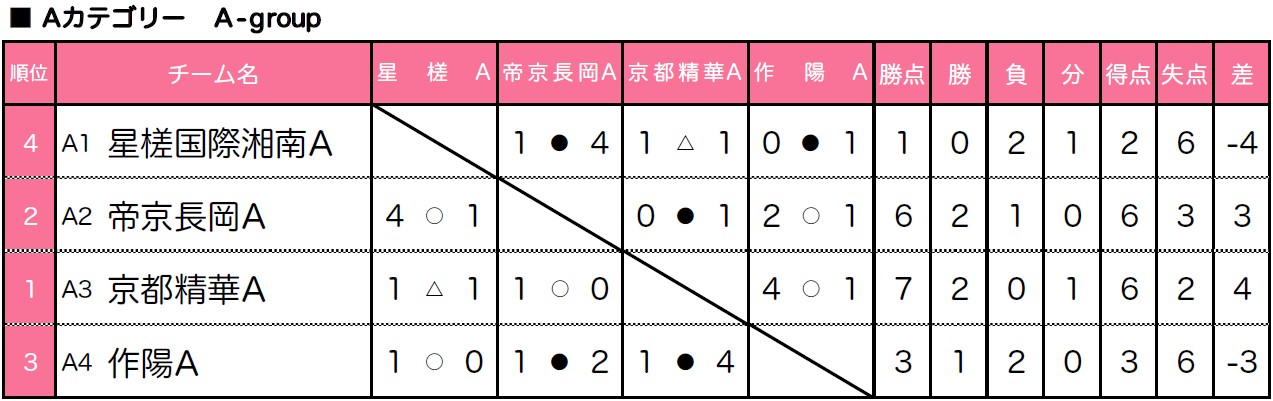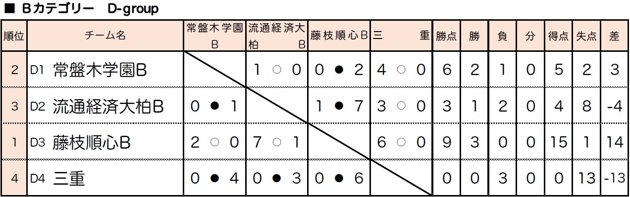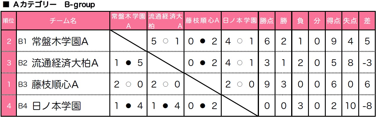 4)リーグ戦において勝ち点が同じ場合は、得失点差、総得点、直接対決の結果の順で決定する。なお決しない場合は、抽選とする。