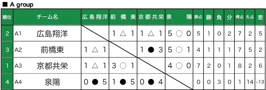 グループリーグにおいては、最終の合計勝点の多いチームを上位とする。(勝利3点、引き分け1点、敗戦0点)