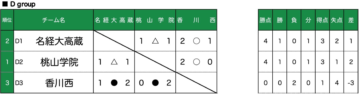 但し、グループリーグにおいて最終の合計勝点が同一の場合には、以下の順序により決定する。
