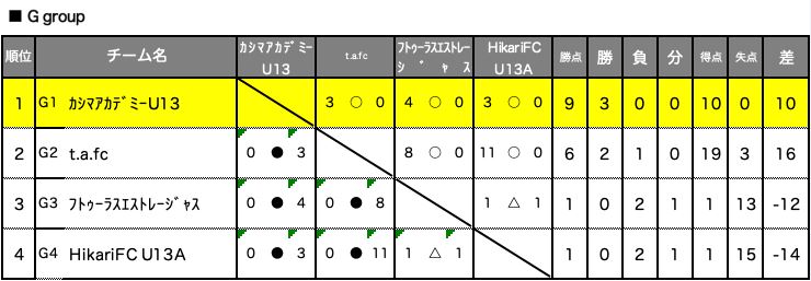 U13カテゴリー:(グループリーグ→順位決定戦)【試合数】計4試合=初日1試合・2日目2試合・最終日1試合