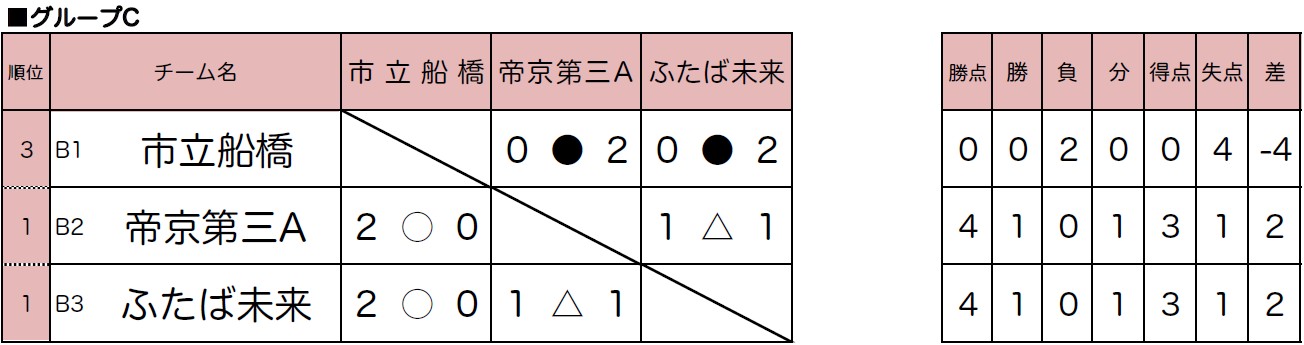 カップ戦(規定試合:初日1試合・2日目/2試合・最終日/2試合)